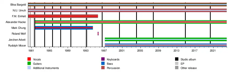 - F.M. Einheit – percussion, vocals (real name: Frank Martin Strauß, 1981–1995)