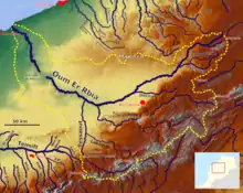 The catchment area of the Oum er-Rbia with the Oued El Abid (bottom right center)