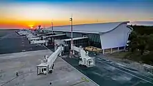 When the airport was built, it originally had only 7 gates. It was designed to handle around 400,000 passengers a year, but the high increase of passengers in the last 15 years brought the airport to its maximum capacity. The airport has had two main expansions in the last decade or so. In its first phase (named AIES I), the airport grew from 7 boarding gates to 12, and later the second phase, AIES II, added 5 more gates bringing the total to 17. Along with new gates, new expanded passenger waiting areas were built. Even though all these expansions have been made, the airport once again has reached the peak of its capacity, handling over 2 million passengers in 2006. In February 2022, a brand new terminal building was inaugurated with five gates and the first gate with double boarding jetways in the airport. The new terminal building segregates arriving passengers, connecting, and departing passengers.
