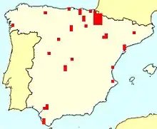 None of the works consulted attempts to define a social profile of the Carlist electorate, be it in terms of sex, age, education, occupation, residence or any other feature.[64] Some approximation is offered by electoral studies dedicated to specific areas – not necessarily representative for the entire Spain[65] – and by works providing social analysis of Carlism at the outbreak of the Civil War.[66] Both types of analysis suggest that Carlism was generally a heterogeneous, inter-class movement; some scholars claim that it was "el movimiento de derechas más interclasista de Epaña".[67] However, it enjoyed popular particularly in rural milieu of small towns and villages rather than in major urban centers; only 3 mandates were obtained by the Carlists in a strictly urban constituency of a large city.[68] Many scholars note also that implantation of Carlism was not equal in all rural areas; it was small- and mid-size farmers rather than landless rural proletariat who were particularly attracted.[69]