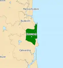 Kawana is an electoral district of the Legislative Assembly in the Australian state of Queensland. Based on the Sunshine Coast, the district has been held by both sides of politics over its short history.[1]