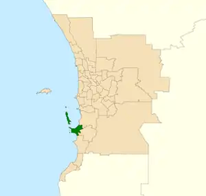 ![]() Location of Rockingham (dark green) in the Perth metropolitan area | |