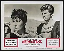 Electra (Greek: Ηλέκτρα Ilektra) is a 1962 Greek film based on the play Electra, written by Euripides. It was directed by Michael Cacoyannis, as the first installment of his "Greek tragedy" trilogy, followed by The Trojan Women in 1971 and Iphigenia in 1977. It starred Irene Papas in the lead role as Elektra, and Giannis Fertis as Orestis.