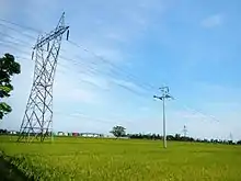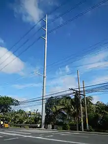 The Philippines transmission grids are prone to natural disasters, aging and outside factors that causes the steel and wood towers to corrode or decay, and grid security is compromised by squatters and insurgent groups. Squatters, or "informal settlers", pose a danger to transmission lines and a hindrance to line maintenance, especially in Metro Manila. The Mindanao Grid is prone to sabotage, led by insurgent groups and unknown assailants, and many transmission towers have been damaged or collapsed from consecutive bombings, that may cause a cascading failure of the grid.[25] Damage to several power plants and a transmission line after the April 2017 earthquake swarm in Batangas reflected the need of power resiliency, resulting the Department of Energy to draft a policy to improve power supply resiliency.[26] Also, most transmission infrastructure are affected by outside factors and aging, showing their signs of corrosion as time goes by which necessitated the need to paint the steel poles, lattice towers, and portal towers with aluminum paint to provide protection from factors that cause the structures to corrode and extend their service lifespan. Wood poles remain in use, especially in the 69,000 volt systems, but are prone to decay and natural disasters, especially typhoons and earthquakes, and many are being replaced with more stable steel or concrete poles or a newer wood pole in some places.
