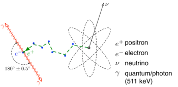 The electron–positron annihilation process is the physical phenomenon relied on as the basis of positron emission tomography (PET) and positron annihilation spectroscopy (PAS). It is also used as a method of measuring the Fermi surface and band structure in metals by a technique called Angular Correlation of Electron Positron Annihilation Radiation. It is also used for nuclear transition. Positron annihilation spectroscopy is also used for the study of crystallographic defects in metals and semiconductors; it is considered the only direct probe for vacancy-type defects.[4]