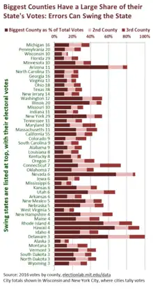 - in a 2020 election in Antrim County, MI, last minute updates to some ballots were not applied to all scanners, so the scanners had inconsistent numeric codes for different candidates and styles of ballots, causing errors of thousands of votes. Corrections happened in stages, leading to less and less confidence in the results.[33] Results were eventually confirmed by a hand count.[34]
