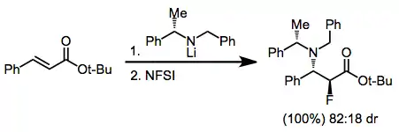 Stereoselective fluorinations may be either diastereoselective or enantioselective. Diastereoselective methods have focused on the use of chiral auxiliaries on the nucleophilic substrate. For fluorinations of carbonyl compounds, chiral oxazolidinones have been used with success.[6]