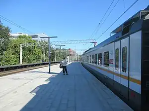 Elektrozavodskaya is a Moscow Railway station on the Kazansky and Ryazansky suburban railway lines in Moscow, Russia. It is located on the Basmanny-Sokolinaya Gora district border (Central and Eastern administrative okrugs respectively), 3.5 kilometres (2.2 mi) from Moscow Kazanskaya railway station.