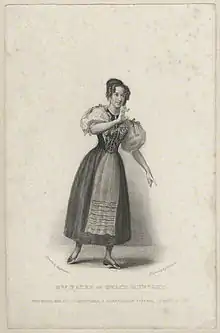 Elizabeth Yates in the melodrama Grace Huntley by Henry Holl; 1833 engraving by Thomas Woolnoth, after Thomas Charles Wageman.