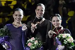 Elizaveta Sergeyevna Tuktamysheva (/ˌtʊktəˈmɪʃəvə/ TUUK-tə-MISH-ə-və;[1] Russian: Елизавета Серге́евна Туктамышева, IPA: [jɪlʲɪzɐˈvʲetə tʊktɐˈmɨʂɨvə]; born 17 December 1996) is a Russian figure skater. She is the 2015 World champion, the 2021 World silver medalist, the 2015 European champion, the 2014–15 Grand Prix Final champion, a 14-time medalist on the Grand Prix series, and the 2013 Russian national champion. On the junior level, she is the 2012 Youth Olympic champion, 2011 World Junior silver medalist, and 2010–11 JGP Final silver medalist.