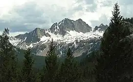 Elk Peak, at 10,582 feet (3,225 m) above sea level, is the eighth-highest peak in the Sawtooth Range of the U.S. state of Idaho. The peak is located in the Sawtooth Wilderness of Sawtooth National Recreation Area in Boise and Custer counties. The peak is located 2.88 mi (4.63 km) west-northwest of Mount Cramer, its line parent. It is the 240th-highest peak in Idaho and 0.5 mi (0.80 km) south-southeast of Reward Peak.[3][4][5]