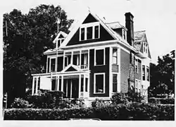 The 2+1⁄2-story asymmetrical wood-frame Queen Anne style house was built in 1889 for Elliot Smith, a local businessman who operated a wholesale grocery. Its porch featured elaborately turned posts and balusters, and the house was clad in wood shingles, including bands of decoratively cut shingles. There was an oriel stained glass window on the south wall. Smith lived in the house until his death in 1913. In 1945, the house was acquired by a veterans' organization, and eventually became VFW post.[2]