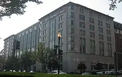 In March 2003, the Elliott School opened its new academic building at 1957 E Street NW. The building was formally opened by then-Secretary of State and GW Alumnus Colin Powell. This building features state-of-the-art lecture halls, classrooms, offices, lounges, and common areas used to host public events. It is diagonally across from the Harry S Truman Building, the headquarters of the United States Department of State through a small park. The school is just east of the headquarters of the American Red Cross and across the road from the United States Office of Personnel Management.