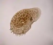 Microscope image of an individual elytron from Augenerilepidonotus dictyolepis. Note the fringing papillae on the border.