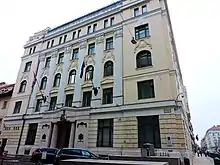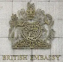 ![]() Royal coat of arms outside the old Embassy building in District V | |