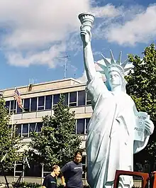 The Embassy of the United States to the Kingdom of Denmark is the diplomatic mission of the United States in Denmark. The building is located on Dag Hammarskjölds Allé, in Indre Østerbro, Copenhagen, and it was opened in May 1954.[1] The embassy also oversees American interests in Greenland.[2] On 10 June 2020, the United States reopened its consulate in Nuuk, Greenland.[3]