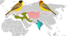 | Breeding and winter distribution ranges of Black-headed and Red-headed Bunting | |