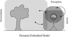 The embodied mind thesis challenges other theories, such as cognitivism, computationalism, and Cartesian dualism.[1][2] It is closely related to the extended mind thesis, situated cognition, and enactivism. The modern version depends on insights drawn from up to date research in psychology, linguistics, cognitive science, dynamical systems, artificial intelligence, robotics, animal cognition, plant cognition, and neurobiology.
