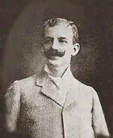 Gabriel Zapata was a farmer and horse trainer, and Emiliano's upbringing on the farm gave him an intimate familiarity with the difficulties of the countryside and his village's long struggle to regain the land taken by expanding haciendas.[8] He received a limited education from his teacher, Emilio Vara, but it included "the rudiments of bookkeeping".[9] Gabriel died when Emiliano was about 16 or 17, leaving the latter to care for his family. Emiliano was entrepreneurial and bought a team of mules to haul maize from farms to town and bricks to the Hacienda of Chinameca; he was also a successful farmer, growing watermelons as a cash crop. He was a skilled horseman and competed in rodeos and races, as well as bullfighting from horseback.[10] These skills as a horseman brought him work as a horse trainer for Porfirio Díaz's son-in-law, Ignacio de la Torre y Mier who had a large sugar hacienda nearby. Emiliano had a striking appearance, with a large mustache in which he took pride, and good quality clothing described by his loyal secretary: "General Zapata's dress until his death was a charro outfit: tight-fitting black cashmere pants with silver buttons, a broad charro hat, a fine linen shirt or jacket, a scarf around his neck, boots of a single piece, Amozoqueña-style spurs, and a pistol at his belt."[10] In an undated studio photo, Zapata is dressed in a standard business suit and tie, projecting an image of a man of means.