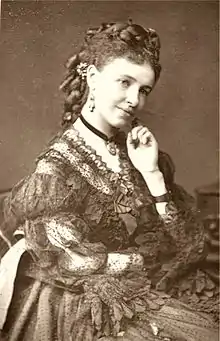 In the fall of 1874, she undertook a tour of the United States, visiting New York, Boston, Philadelphia, Baltimore, Washington, D.C., Chicago and Albany.[24] The tour was under the management of Maurice Strakosch. She was accompanied by Frederick Gye's son, Ernest Gye, who was acting on his father's behalf.[25] She learned the role of Elsa in Wagner's Lohengrin in two weeks, performing it at the Academy of Music in New York.[26] The opera was performed in Italian, which was also the custom at Covent Garden.[23]