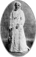Emmeline Blanche Woodward Harris Whitney Wells (February 29, 1828 – April 25, 1921) was an American journalist, editor, poet, women's rights advocate, and diarist. She served as the fifth Relief Society General President of the Church of Jesus Christ of Latter-day Saints (LDS Church) from 1910 until her death. She represented the state of Utah at both the National and American Women's Suffrage conventions and was president of the Utah Woman's Suffrage Association.[3] She was the editor of the Woman's Exponent for 37 years.[4] She was a plural wife to Newel K. Whitney, then Daniel H. Wells.[3]