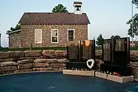 On June 13, 2013, the NTHF executive director, along with former university officials, U.S. Sen. Jerry Moran's staff, and local government leaders broke ground by the one-room schoolhouse located on the campus to build a memorial for teachers who have fallen in the "line of duty". The Sandy Hook Elementary School shooting was the main inspiration for the memorial.[52] On June 6, 2014, the granite memorial markers were placed along with granite benches.[53] The official dedication was held on June 12, 2014.[54]