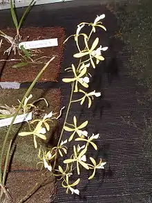 - ↑ page 251 of Leonardo P. Felix and Marcelo Guerra: "Variation in chromosome number and the basic number of subfamily Epidendroideae (Orchidaceae)" Botanical Journal of the Linnean Society 163(2010)234-278. The Linnean Society of London. downloaded October 2010 from http://onlinelibrary.wiley.com/doi/10.1111/j.1095-8339.2010.01059.x/pdf