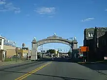 The entrance to Johnson City on Main Street from Binghamton is marked with a stone arch embossed with Home of the Square Deal. There is a corresponding arch on the other end of Main Street that served as the entrance to Endicott.