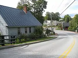 The district extends from Oak Grove Street in the west to the junction of Baltic Street and United States Route 4 in the east, and includes properties on both sides of the Mascoma River, from Route 4 to the junction of Pillsbury Street and Shaker Hill Road. The village had modest rural beginnings, but began to grow economically with the arrival of the railroad in the mid-19th century, and through the economic activity of the local Shaker community, located on the south side of Lake Mascoma. This resulted in a significant number of Greek Revival and Italianate style houses in the village. The economic power of the Shakers was significant in the village; despite its location outside the village, the Shakers owned or controlled the mills that were the early economic centerpiece of the village. Although a number of mills were built, the major economic activity was eventually consolidate in the Baltic Mills complex, the only major mill complex to survive. These privately owned enterprises resulted in the town's largest period of economic growth, around the turn of the 20th century, when much of the town's commercial center was developed. The village is also home to the town's major civic structures, including c. 1901 Whitney Hall, which houses the town offices and library, the 1852 Unitarian church, and a c. 1907 school, now Enfield Elementary School.[3]