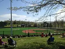 English Field at Atlantic Union Bank Park is a baseball stadium in Blacksburg, Virginia. It is the home field of the Virginia Tech Hokies college baseball team. It was opened in 1989 and has a capacity of 1,033 in chair back seats plus additional grass-covered bank seating along the left field line known as "The Hill".[1] English Field underwent an $20 million renovation in 2018.[2]