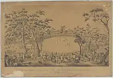 The first match of the tour, against Victoria in Melbourne, drew 45,000 spectators over three days, enabling Spiers and Pond to pay the tour's expenses after just one match.[2] Later in January 1862, the team played New South Wales on the Sydney Domain; the Secretary for Lands, John Robertson controversially allowed the promoters to charge admission to the public while arranging a free stand for parliamentarians.[3]