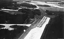 Twente Airport was opened July 1931 by the mayor of Enschede, Edo Bergsma. KLM started a scheduled flight to Amsterdam in 1932, which was suspended in 1939. During World War II the German Luftwaffe took over the airport and made it a military airbase, renaming it Fliegerhorst Twente. In April 1945 allied troops reoccupied the airport renaming it to B 106/Twente and transferred ownership to the Dutch armed forces. A minor typo in the deed misspelled the airport name as Airbase Twenthe, with an added 'h'.[2]