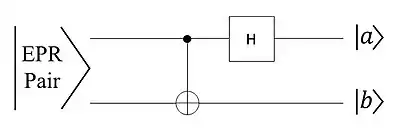Equivalently, the measurement may be done in the computational basis, , by mapping each Bell state uniquely to one of with the quantum circuit in the figure to the right.