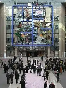 The sculpture was set up again in the Centre of Contemporary Art DOX in Prague-Holešovice and inaugurated on 11 June 2009, in presence of guests, including former Czech president Václav Havel.[45] Entropa was on display in the Techmania Science Center in Plzeň as part of an EU exhibition.[46]
