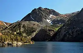 Epidote Peak is a 10,964-foot-elevation (3,342 meter) mountain summit located in the Sierra Nevada mountain range, in Mono County of northern California, United States.[4] The mountain is set in the Hoover Wilderness on land managed by Humboldt–Toiyabe National Forest. The peak is situated one mile outside the boundary of Yosemite National Park, approximately one mile east of line parent Camiaca Peak, and 1.7 miles (2.7 km) west of Dunderberg Peak. Topographic relief is significant as the north aspect rises 1,500 feet (460 meters) above East Lake in one-half mile. The first ascent of Epidote Peak was made by several Sierra Club members in 1917.[5] This landform's toponym, which refers to the greenish mineral epidote present here, has been officially adopted by the United States Board on Geographic Names, and has been in print since at least 1919.[6][4][7]