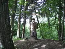 A carved wooden watchkeeper near the entrance to the Eppingen chartaque.
