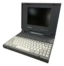 Epson, which is sometimes credited for being the first to market a laptop computer with the HX-20 in 1982,[2] introduced the ActionNote series in April 1993.[3] Development for the ActionNote was led by Sanford Weisman, portable computer product manager at Epson America, who was also instrumental in the design of the company's earlier NB series of laptops.[4] In response to criticism that the purported piecemeal replacement of the NB line with the ActionNote would cause the company to fall further behind in laptop innovations,[5] Weisman said that NB would continue to be marketed simultaneously with the ActionNote—the former being sold to large businesses through reseller networks and the latter to small businesses and home office buyers through retailers.[3] All entries in the ActionNote line came preinstalled with MS-DOS and Microsoft Windows, starting with Windows 3.1 for the 4SLC-25,[6] Windows 3.11 for the 700 series,[7] and Windows 95 with the 660 and 880 series.[8]