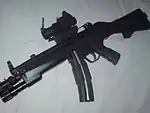 9×19mm Parabellum | MP5A2, MP5P3, MP5K variants in service.[3][4] Locally produce under license by POF. | |
