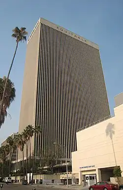 The Equitable Life Building is a 138 m (453 ft) International style skyscraper in the Koreatown neighborhood of Los Angeles, California. It was completed in 1969 and has 34 floors. It is tied with the Los Angeles City Hall for the 39th tallest building in Los Angeles. Welton Becket & Associates designed the building for the Equitable Life Insurance Company. The facade is made of precast concrete that was sandblasted to expose the beige Texas limestone aggregate.