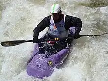 Jackson has been world freestyle champion four times (1993, 2001, 2005, 2007), as well as Pre-World Champion in 2000 and 2004 and World Cup Champion in 2006. In October 2009, Eric Jackson achieved second place at the freestyle kayak world championships in Thun, Switzerland. In 2014 Eric achieved what might be a world record by maintaining his status on the USA Kayak Team for 25 years straight. In 2015 he failed to make the USA Team, but in 2017 he re-qualified and is now on his 27th year on Team USA in total. Eric has been a member of the United States of America Kayaking Team, either in freestyle or in slalom, every year since 1989. Jackson competed in the 1992 Summer Olympics in Barcelona as part of the U.S. Olympic team, finishing 13th in the K1 event.[1] He is a two-time winner of the Everest award.[2] He is the author of 4 instructional books and 8 videos teaching many aspects of whitewater kayaking, including river running, playboating, rolling and bracing. His children Emily and Dane are also World Champion kayakers.