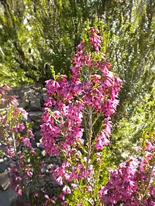 Erica australis, the Spanish heath or Spanish tree heath, is a species of flowering plant in the family Ericaceae, native to the western Iberian Peninsula (Portugal and Western Spain) and Northwest Africa (in Morocco). It is a bushy evergreen shrub growing to 2 m (6.6 ft) tall and broad, with tiny needle-like leaves and pink to purple bell-shaped flowers in late Spring. As a calcifuge, it requires sharply drained acidic soil in full sun. It is hardy down to −10 °C (14 °F).