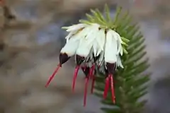 Erica recurvata is a critically endangered South African species of Cape heath first known from a botanical painting by Henry Cranke Andrews in the late 1700s. The species was rediscovered after some 200 years when it was found flowering near Napier in 2007. It belongs to the small Oxyloma section of Ericas, all three the members having strongly exserted styles, and included anthers.[1][2]