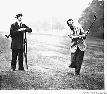 The drastic simplicity of his approach to golf instruction met with rancor and objection when he was invited by the PGA (Professional Golfers' Association of America) to present his work. Horton Smith, then the incoming president of the association, told Jones his system was "..too simple. We wouldn't sell enough lessons." Jones responded, "That's the trouble, you want your students to keep on suffering. Once you get your people to swing the clubhead they will improve." Perhaps much to the PGA's chagrin, whereas an average pro would have given about 600 lessons a year, Jones would give many times that number.[3] One of Jones' devotees was Angel de la Torre who in turn taught this approach to his son Manuel de la Torre. These two professionals alone would add thousands to the list golfers who benefited from a "club-focused" approach to golf. Jones often said, "The trouble with the teaching of golf, is that one is taught what a swing produces [body movement], instead of how to produce a swing [club movement]." Manuel de la Torre was the preeminent authority on the Ernest Jones approach and further developed it in his teaching.