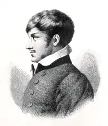 Schulze's early post-graduation lectures reflected his particular poetical interests, particularly Ancient Greek lyric poetry; his first two lectures were entitled „Ueber die Geschichte der lyrischen Poesie bey den Griechen“ and „Metrik […] und Prometheus des Aeschylus“.[3] Perhaps more importantly than his profession, however, became his love for Cäcilie Tychsen, daughter of the Orientalist and theologian Thomas Christian Tychsen. Cäcilie and her sister Adelheid were regarded by as Göttingen society as beautiful and musically talented and Schulze first met Cäcilie in 1811. A brief romance followed, which intensified on Schulze's part after Cäcilie fell incurably sick from pulmonary tuberculosis the following year at the age of eighteen. The couple's engagement came shortly before Cäcilie's death on 3 December 1812. Schulze wrote, "In Cäcilie, whilst truly chaste, I was made many times more beautiful and wonderful. It was what, perhaps, I could become if there were immortality, instead of now residing in gloom."[4]