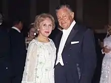 Lauder received the Knight class of the Legion of Honour from the Consul General of France, Gerard Causer. She was the first woman to receive the Chevalier Commendation this year, on January 16, 1978.[21] She was inducted to the Junior Achievement U.S. Business Hall of Fame in 1988. She received the Presidential Medal of Freedom in 2004.