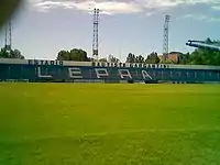 ![]() Tribuna popular del estadio. | |