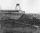 First projects to build a stadium with concrete grandstands came in 1933. On April 10, 1938, the last match held in the stadium was played with Boca Juniors losing to River Plate 2–1. After that, the old wooden grandstands were dismantled. The grandstand on Casa Amarilla street was traded to Club Ferro Carril Oeste which placed it in its own stadium, on Martín de Gainza street. In return for that, Ferro traded Boca Juniors halfback Arcadio López and allowed Boca Juniors to use its stadium until the new venue was finished. This agreement entered into force since the 1938 season.[10]