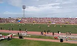 In addition to football events, the stadium can host track and field events and is located within a sports complex.