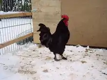 The Poule d'Estaires (French pronunciation: [pul detɛʁ]) is a breed of domestic chicken from the Nord – Pas de Calais region of north-eastern France. It is a variety of the Langshan breed imported to England from China in 1872, and exported from there to Europe soon after.[3][4] Some were raised in the Pas-de-Calais département, and others in the neighbouring Nord département, particularly in the areas of Estaires, La Gorgue, Laventie and Merville, from which birds were supplied to Lille.