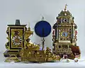 Eszterháza was first inhabited in 1766, but construction continued for many years. The opera house was completed in 1768 (the first performance was of Joseph Haydn's opera Lo speziale), the marionette theater in 1773.[1] Joseph Haydn's concerts typically took place in the Sala Terrena on the ground floor, in the picture gallery, where on May 30, 1781, a concert was performed in the presence of Duke Albert and Sachsen-Teschen and his spouse, Archduchess Christine.[1] Musical entertainment for the higher ranks was provided in the main building, typically located in the picture gallery ground floor. Regular free-to-attend academies were typically held in the marionette theater, which were open to the public and hosting a whole range of cultural and environmental programmes.[1] The fountain in front of the palace was not completed until 1784, at which point the Prince considered his project complete.[1] The music room was decorated with white and gold walls with delicately rounded corners, the frescoed ceiling, glass chandeliers, roses, and audience's period chairs.